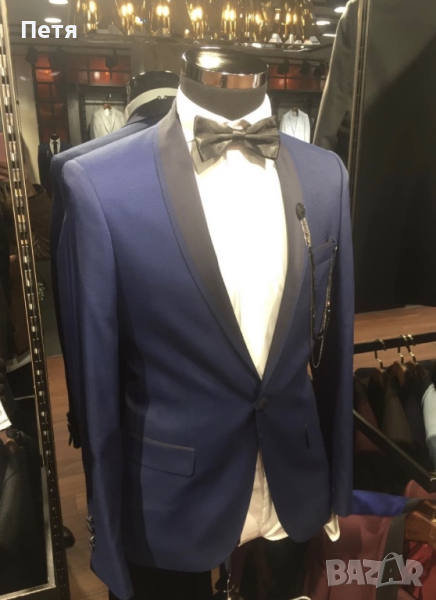 Чисто нов мъжки костюм Fatih Zeyrek. Размер 46. Вталено сако и панталон. Подарък папионка. Закупен от модна къща “Нимана”. Продава се, защото повода се отмени.