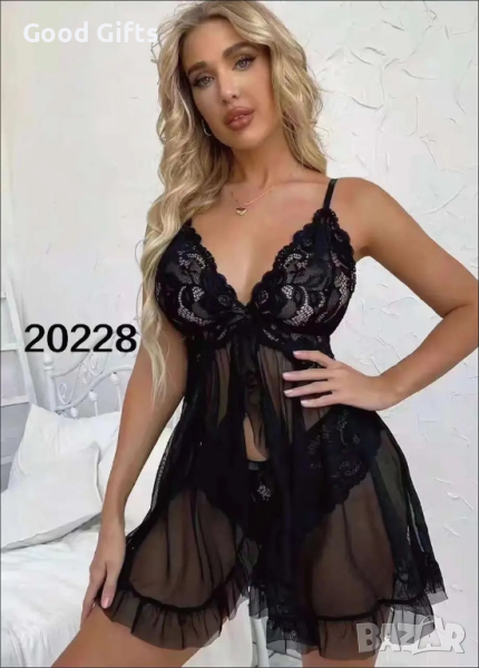 Дантелена нощница от флорална дантела в комплект с прашка.