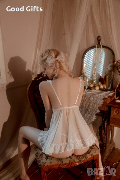 Дантелена нощница от флорална дантела в комплект с прашка.