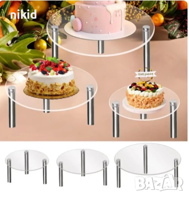 Прозрачна кръгла акрилна поставка поднос стойка основа за торта на етажи → Обява 45008664