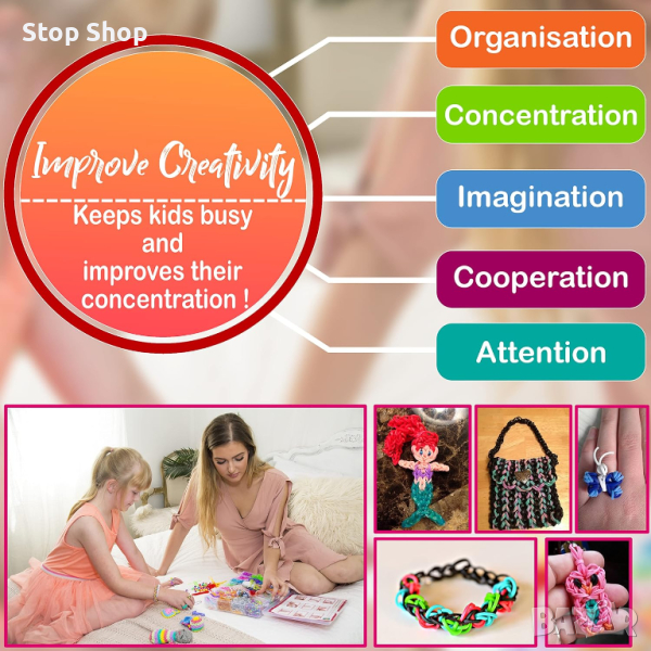 Комплект гривни Комплект за изработване на гривни Гумена лента 4800+ Комплект гривни Loom, Голям кал → Обява 45008895