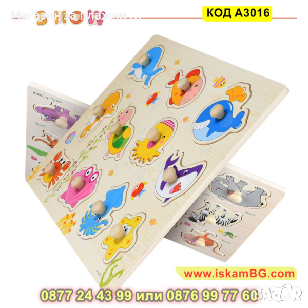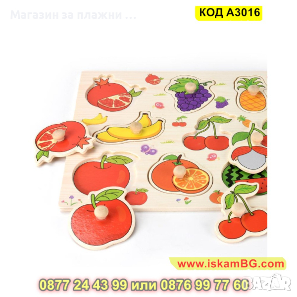 Дървен пъзел Екзотични плодове с дръжки и размери 30х22,5 см. - модел A3016 - КОД A3016 → Обява 45009159