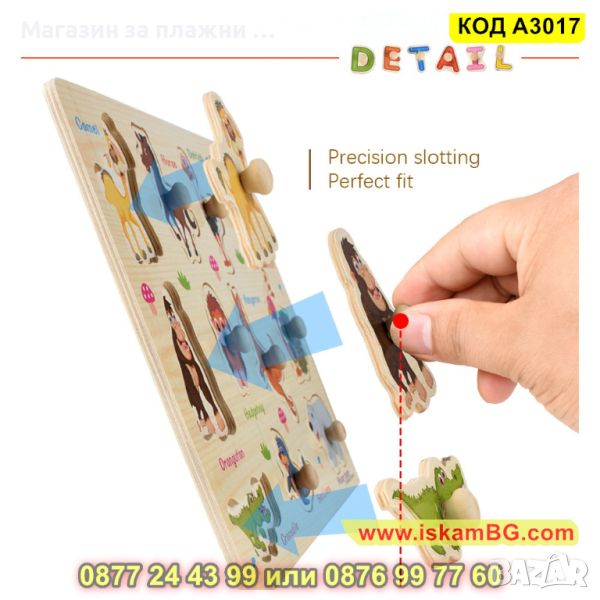 Дървен пъзел Малки Фермери с дръжки и размери 30х22,5 см. - модел A3017 - КОД A3017 → Обява 45009196
