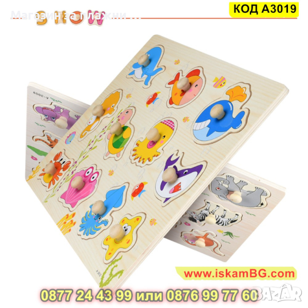 Дървен пъзел Спортисти с дръжки и размери 30х22,5 см. - модел A3019 - КОД A3019 → Обява 45009239