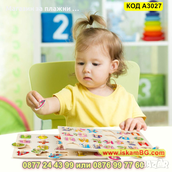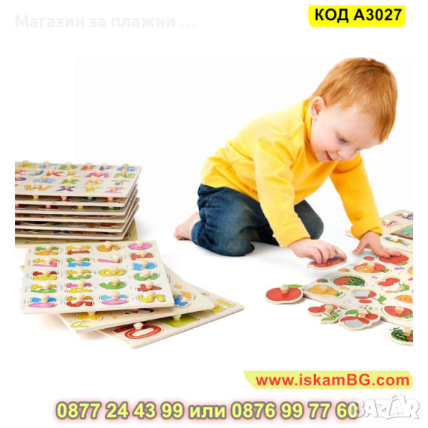 Дървен пъзел 7 животни от Джунглата с дръжки и размери 30х22,5 см. - модел A3027 - КОД A3027 → Обява 45009445
