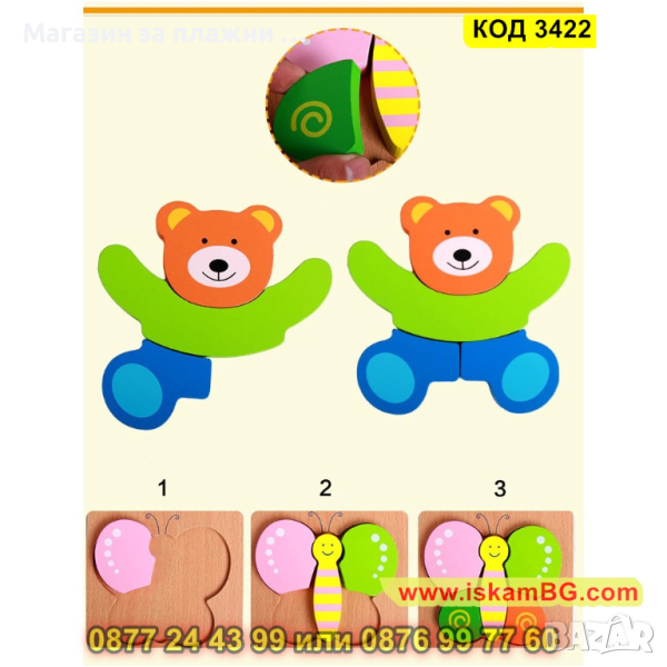Дървен 3D детски пъзел - 1 бр.