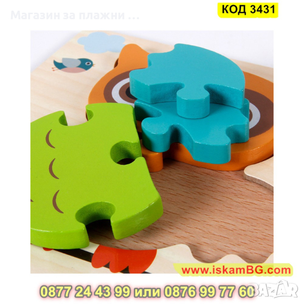 Дървен 3D детски пъзел - 1 бр.