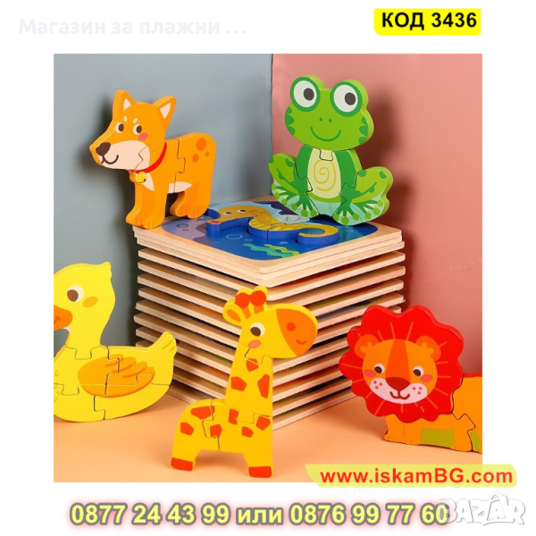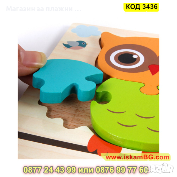Дървен 3D детски пъзел - 1 бр.