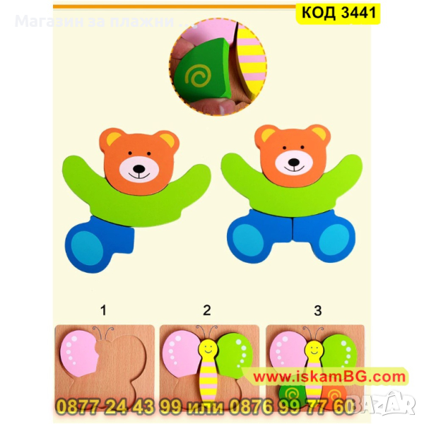 Детски дървен пъзел Рак с 3D изглед и размери 14.5 х 15.4 см. - модел 3441 - КОД 3441