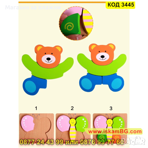 Дървен 3D детски пъзел - 1 бр.