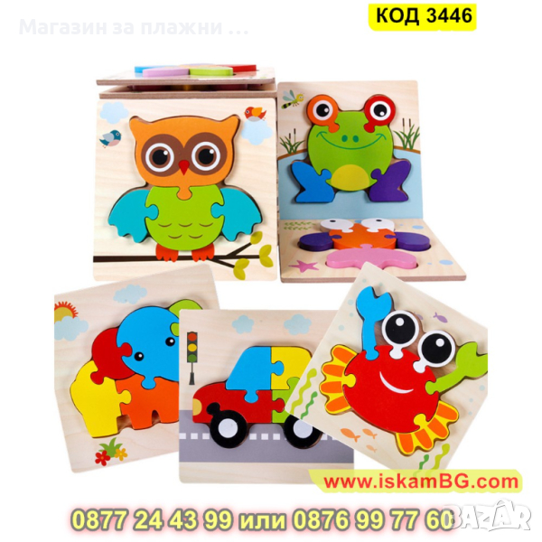 Детски дървен пъзел Кола с 3D изглед и размери 14.5 х 15.4 см. - Модел 3446 - КОД 3446