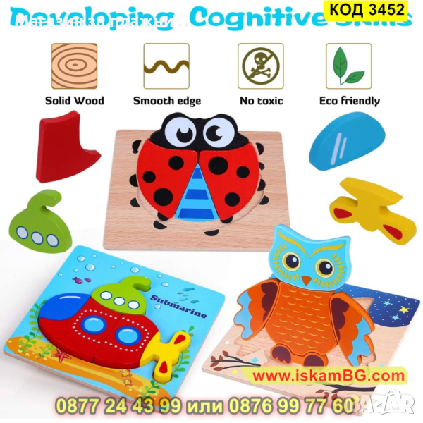 Дървен 3D детски пъзел - 1 бр.