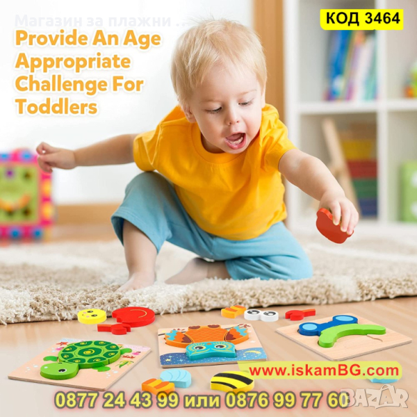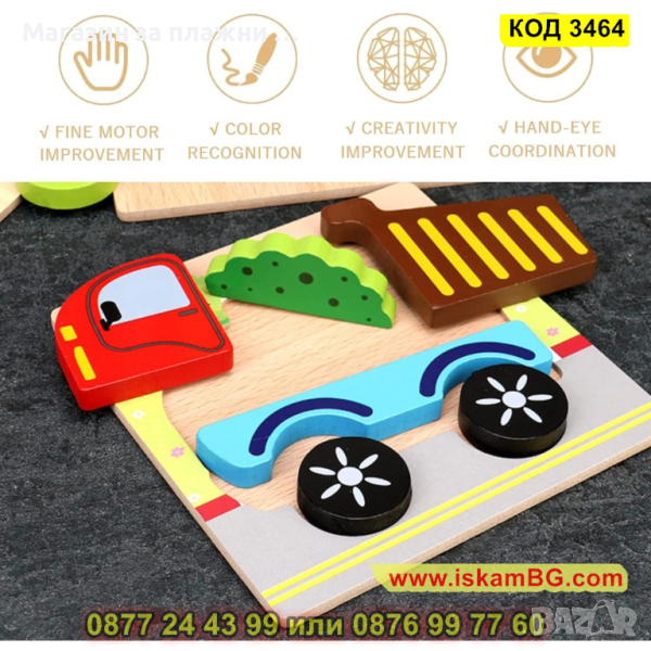 Дървен 3D детски пъзел - 1 бр.