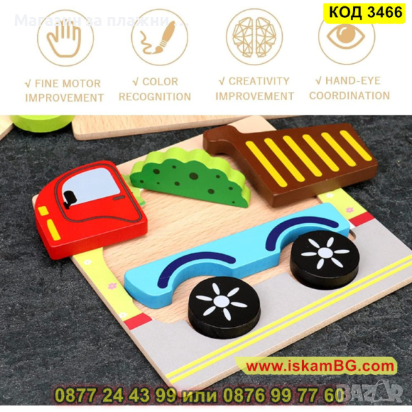 Дървен 3D детски пъзел - 1 бр.