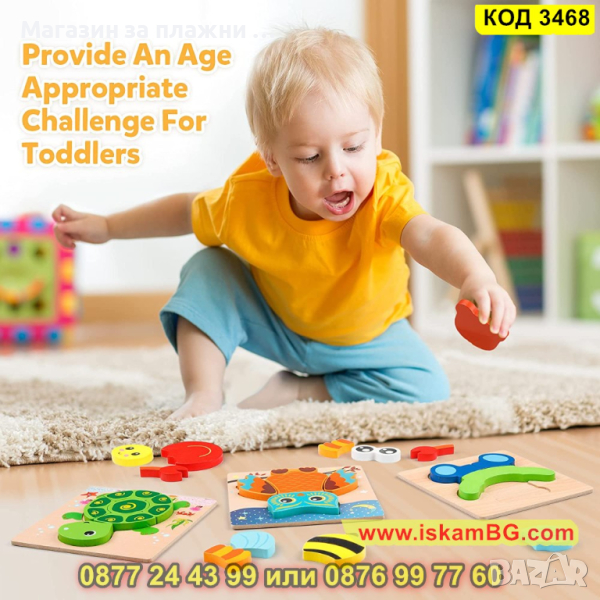 Дървен 3D детски пъзел - 1 бр.