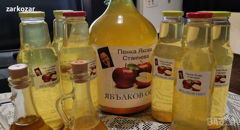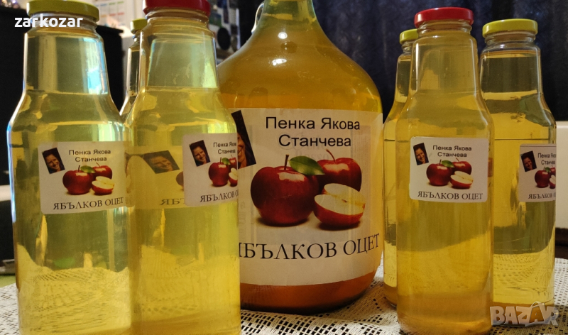 Оцета е озрял в стъклени съдове по 15 годишна доказана технология .Ябълките са от собствена градина(не са употребявани пестициди).Имаме и по-млад оцет на 6 и 8 месеца.Транстортира се в пластмасови шишета (препоръчвам после да се прехвърли в стъклени)!Шипковия оцет е на 18лв лт.