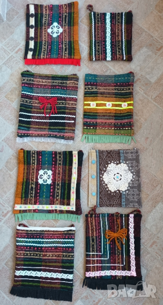 Торби за народна носия и всякакъв повод за декорация на механи и д-р. идеи. Нови. Изработени от оригинални вълнени платове с пришити орнаменти по тях цена 35 лв.