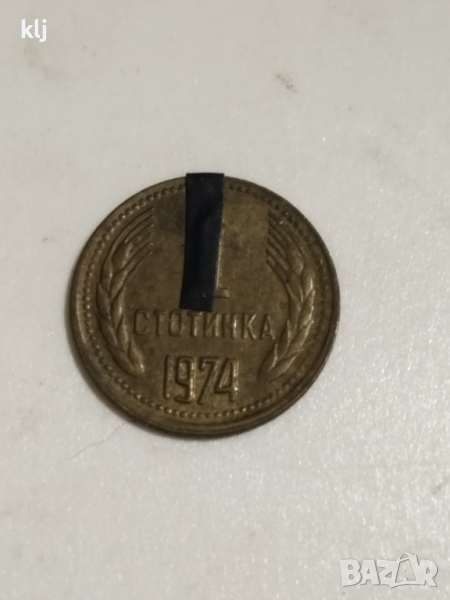 Монета от 1 Стотинка 1974 година, монетата е със завъртян реверс