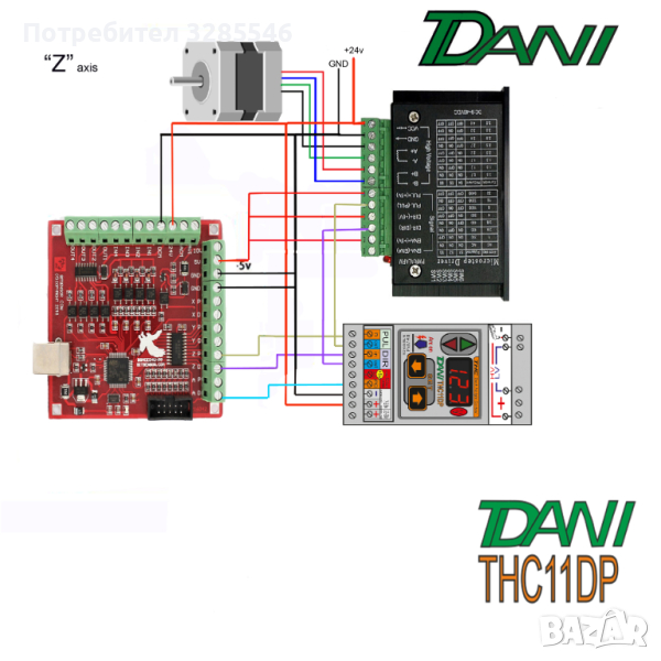 Dani THC11DPL (Dir/ Pulse)(Посока/Импулс) е самостоятелно устройство. То може да контролира директно двигателя на оста ”Z”, без да използва Mach3 или компютър, като изпраща контролни сигнали директно към драйвера на двигателя, за да се движи нагоре или надолу, с настроима скорост. Dani THC11DPL е подходящ за използване с Контролни бордове които не подържат THC функция(като USB или LAN сериен комуникационен интерфейс).