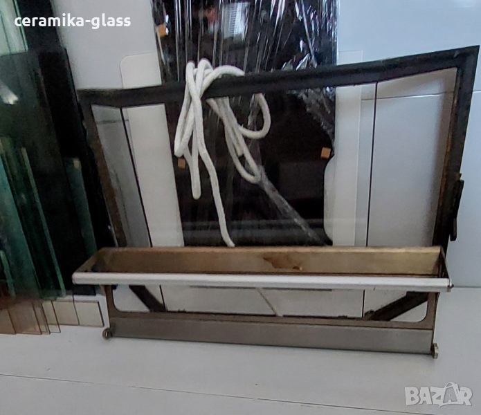 L-450мм L1-230мм H-235мм. Ние от Ceramikaglass Предлагаме огнеупорно(керамично)стъкло-японска стъклокерамика с дебелина 4мм. за камини, горивни камери, печки, пещи, барбекюта и уреди изискващи много висока температура до 800 градуса. Стъклото се реже по поръчка и размери дадени от клиента, изрязват се всякакви форми(кръг, елипса, трапец, ромб, триъгълник и др.)също така изработваме и отвори върху стъклото за поставяне на дръжки. Стъклата могат да бъдат и боядисани с огнеупорна боя по индивидуален размер. Изработваме и метални конструкции и вратички за камини, пещи и барбекюта. Предлагаме и обикновени закалени стъкла по размер с дебелина (4мм. 5мм. 6мм.)за тях цената се определя от дебелината и размера на стъклото. Посещение на адрес за вземане на точни размери на стъклото за гр. София, гр Банкя, гр. Перник, цена 16 евро. Монтаж на стъклото между 5 и 15 евро. подмяна на огнеупорно въже цена по договаряне според дължината и дебелината на въжето. За фирми и лица купуващи големи количества цената може да се договаря. За повече информация на тел. / VIBER. Работиме с куриерска фирма Еконт и изпращаме стъкла до всяка точка на страната. Доставката е за сметка на купувача. Адрес: гр. София кв. Владая ул. Витошки грани #13
