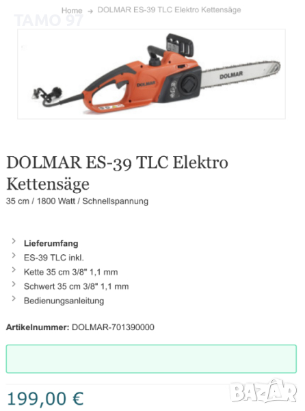 Продавам електрическа резачка за дърва на Долмар който е неразличим от нов както се вижда на снимките, използван е само 2 пъти и работи брилянтно, внос от Франция. Пращаме с опция преглед и тест с куриерска фирма еконт може и лично предаване за гр. Шумен.
