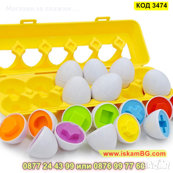 Детски сортер с цветни яйца 12 бр. - КОД 3474