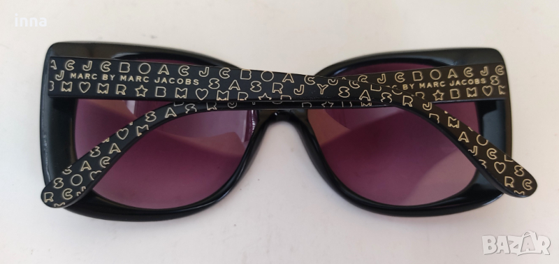 Оригинални слънчеви очила MARC By MARC JACOBS. Представителни. Запазени. Почти без следи от употреба. Винтидж модел, но актуален и сега. Стъкла и рамки без драскотини и наранявания. Леко износване има само на надписа от вътрешната страна на едната рамка, но на другата е почти заличен. Външните надписи са много ефектни и без никакви забележки.