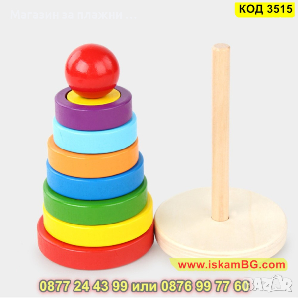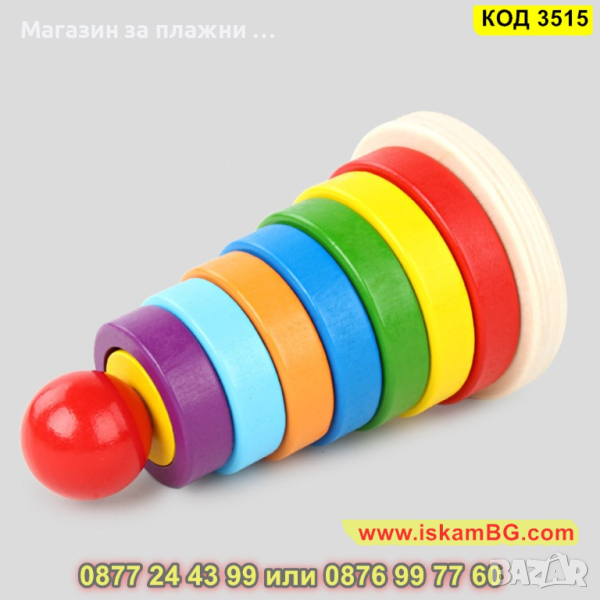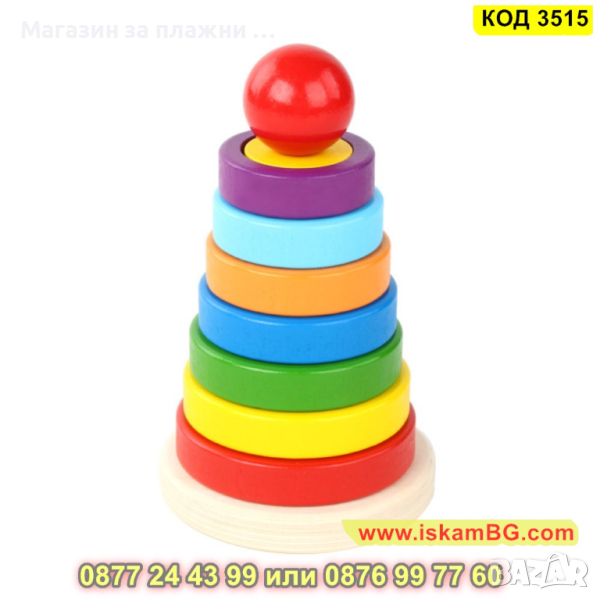 Дървен сортер с кръгли рингове тип пирамида - КОД 3515