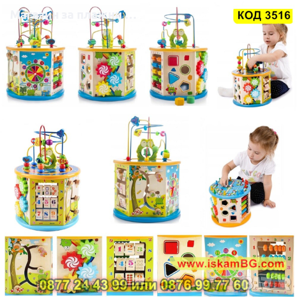 С образователния куб детето може да научи числата, да се научи да брои, да тренира паметта, логическото мислене и прости математически задачи, да научи цветовете, формите, да познава часовете на часовника и т.н. Играчката е безопасна за най-малките. Всички дървени елементи са перфектно шлифовани и боядисани с екологично безопасни бои. Също така няма изпъкнали, остри елементи, които биха могли да наранят детето.