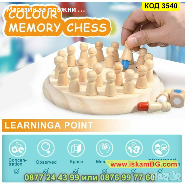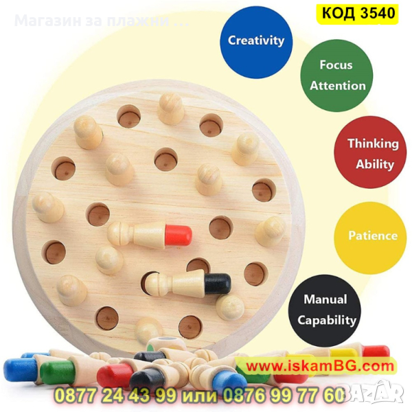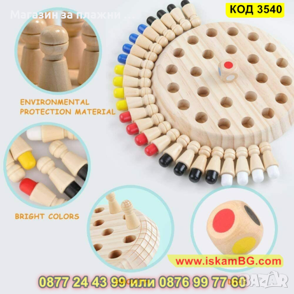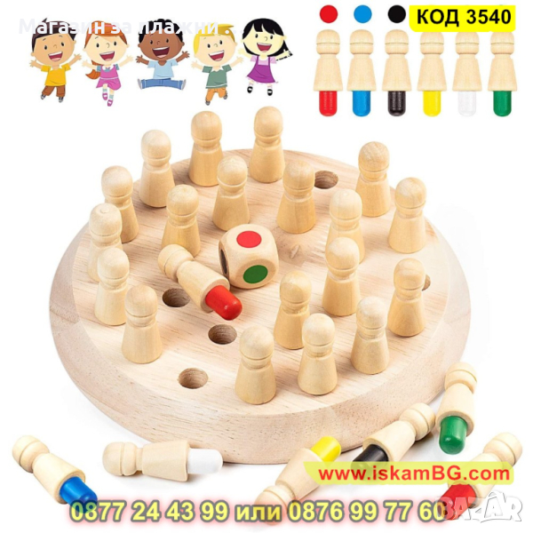 Бебешки дървен шах за памет