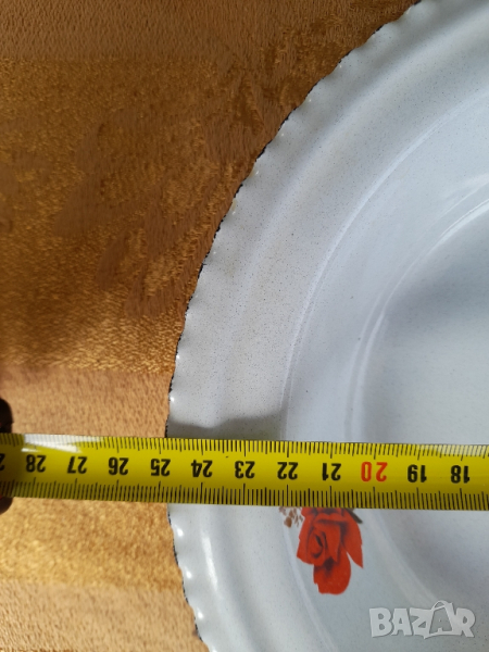 Стара Бг.метална чиния, състояние видно на снимките изключително запазена за годините си, параметри на снимките.