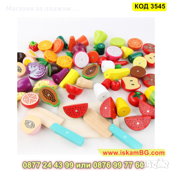 Благодарение на дървения нож и дъската, включени в комплекта, както и вътрешните велкро закопчалки, можете да разрежете продуктите на половина, а някои дори на повече части. Многократно формите могат да се разделят и събират по между си, което несъмнено разнообразява забавлението.
