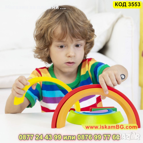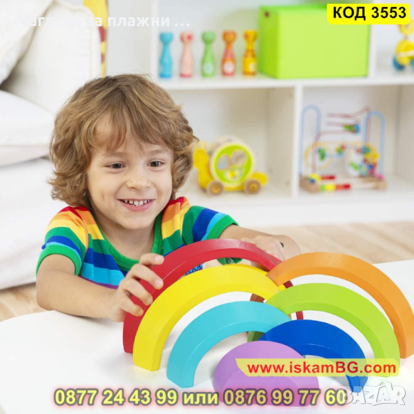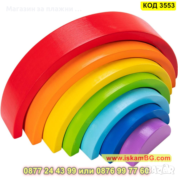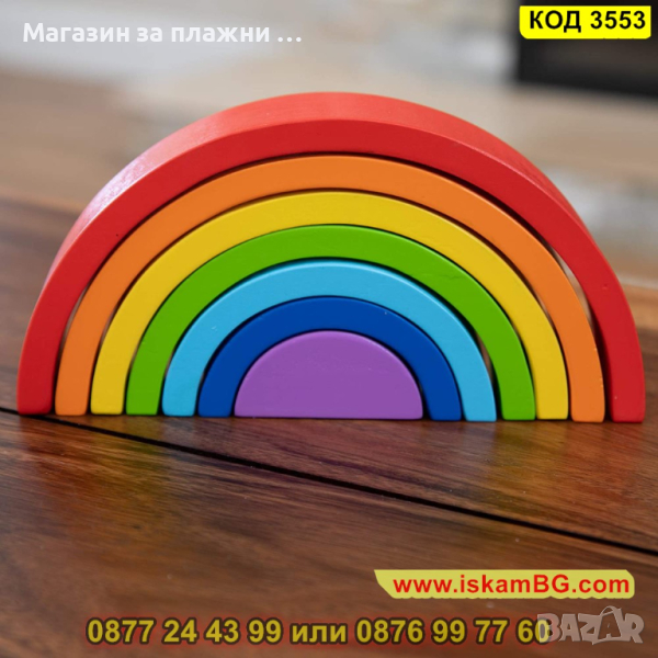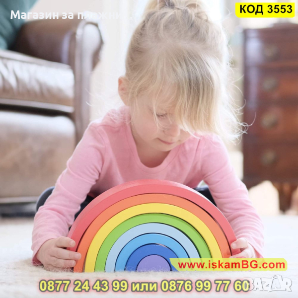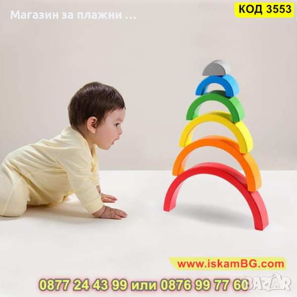 Дървената дъга – Монтесори се състои от 7 части и е с форма на пирамида, която трябва да има всяко дете.