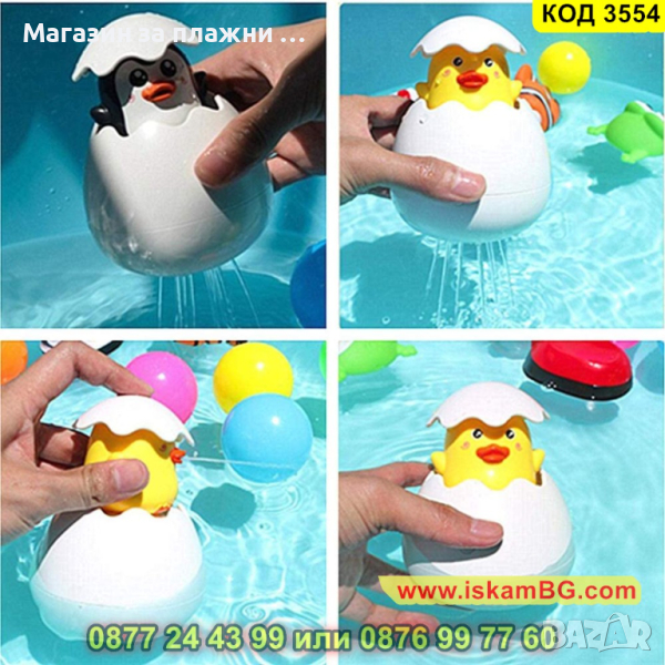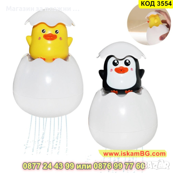 Забавна детска играчка за къпане във формата на яйце с пате или пингвин - КОД 3554