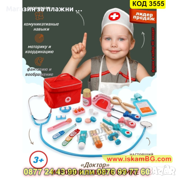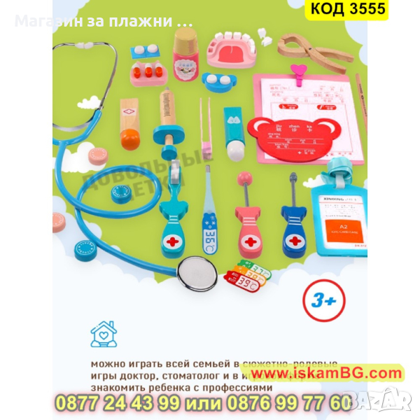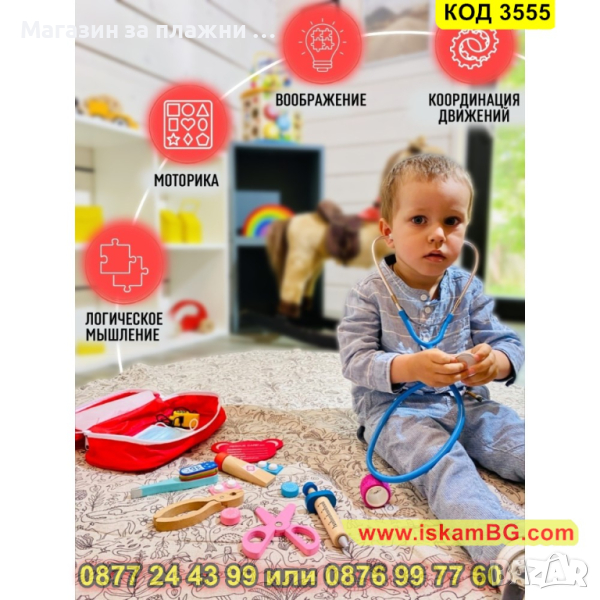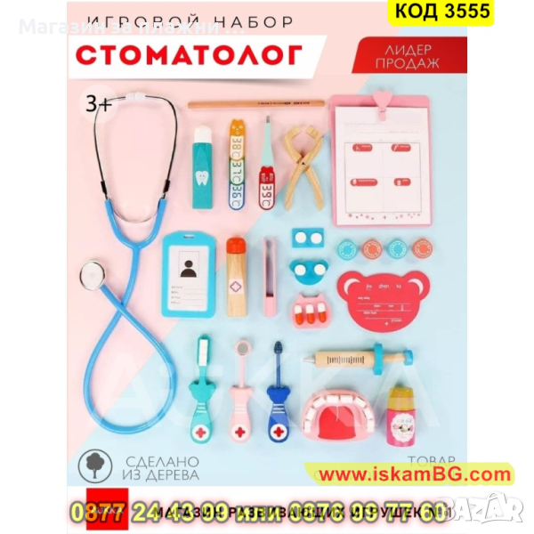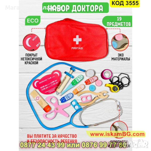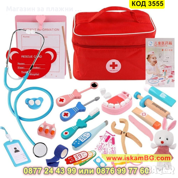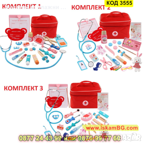 Един забавен начин детето Ви да развие своите умствени мисловни функции, както и да обогати речника си по един много вълнуващ начин! Комплектът за ролеви игри бива три вида: Лекарски комплект с аксесоари от дърво, Зъболекарски комплект и Комбиниран комплект. Всички елементи са внимателно изработени от естествен дървен материал, без остри ръбове и дребни елементи. Напълно безопасни са.