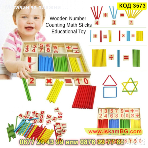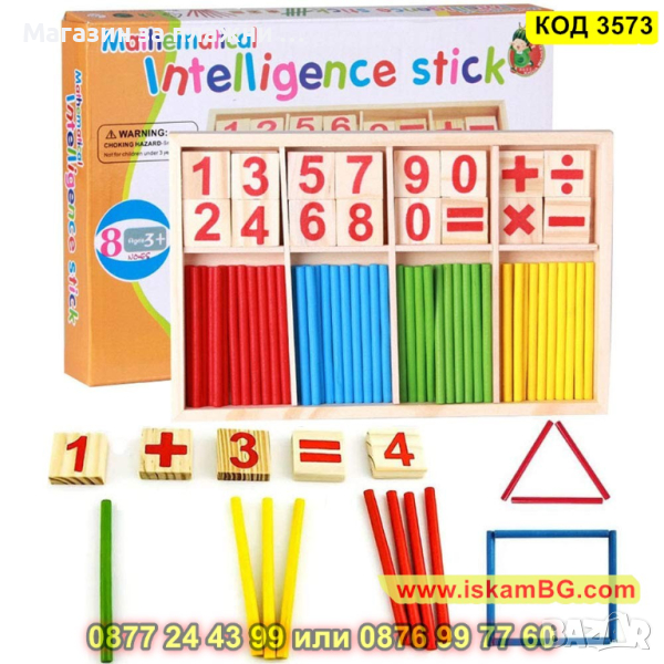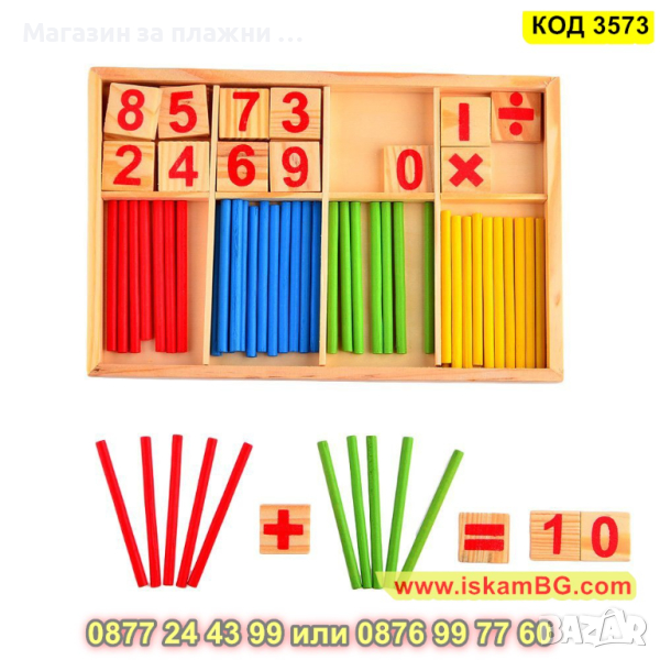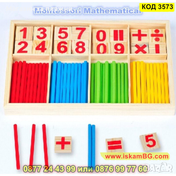 Образователни дървени цифри с цветни пръчици - КОД 3573