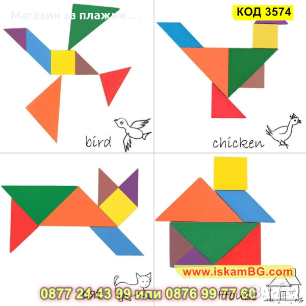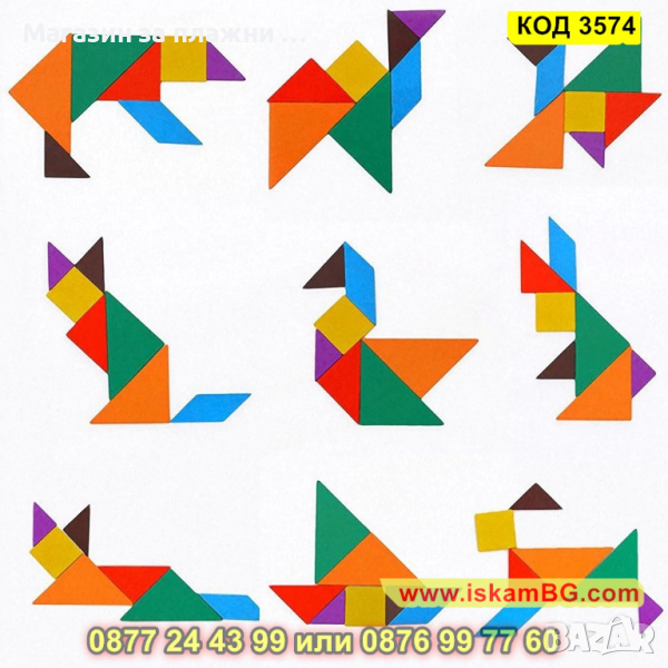 Танграм е древна китайска игра, нарича се още „седемте плочки на познанието“. Днес се признава за отлично познавателно и образователно средство. Танграм е креативен начин да използваш времето и въображението си. Към момента са описани над десет милиона фигури.