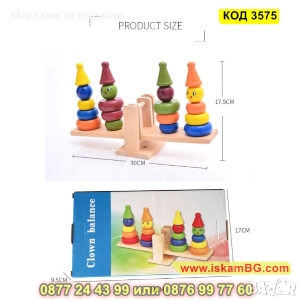 Образователна Монтесори игра за балансиране и подреждане на дървени клоуни върху везна. Мултифункционална игра за строене и сортиране на дървени фигурки. Клоуните са направени от по три дървени ринга, топче за глава и конус за шапка. Започнете да балансирате, когато поставите фигурките на дървената везна.