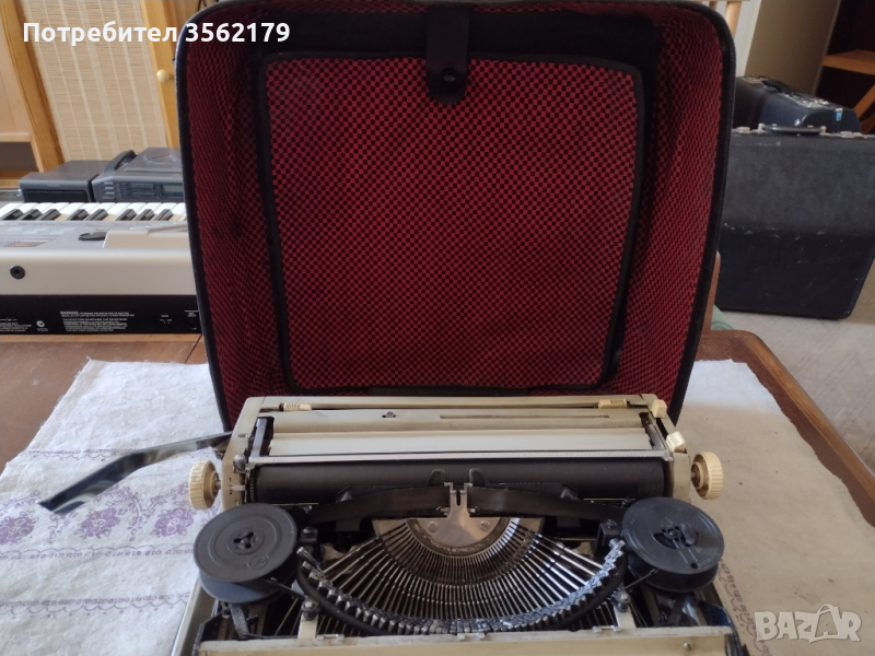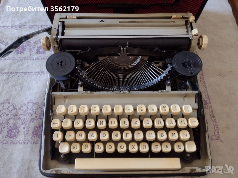 Машината работи и печата.Има забележки предвид годините си .За ползване или интериор Лично предаване.