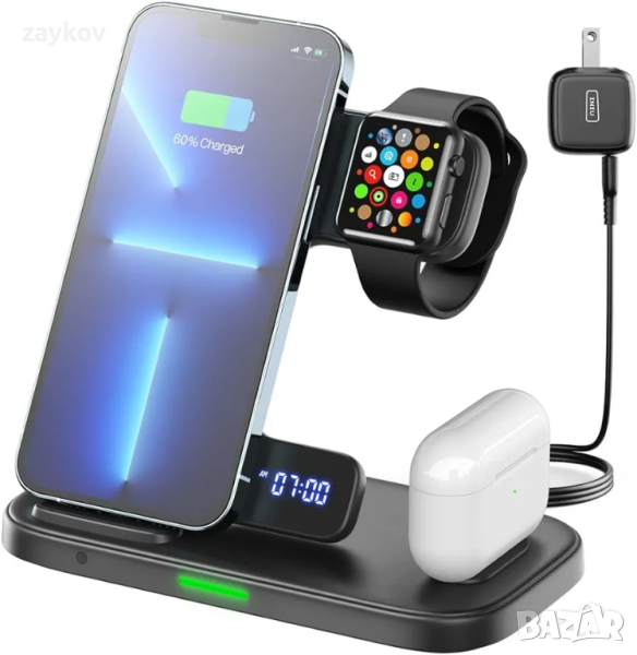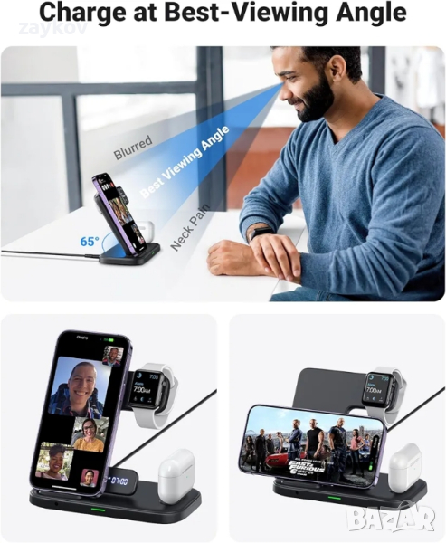 Безжично зарядно устройство INIU, 15 W 3 в 1 стойка за бързо безжично зареждане