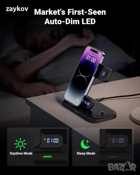 Безпроблемно вградено зарядно устройство за часовник: Заредете вашия iWatch за миг с вграденото магнитно зарядно устройство. Няма повече караница около навиването на кабела и инсталирането на оригиналното зарядно устройство, както при другите безжични зарядни устройства.