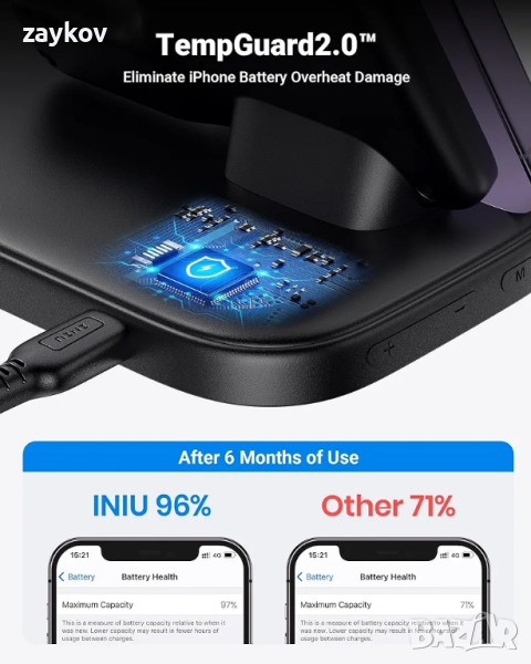 ✅【1 безжично зарядно устройство, 3 устройства】Никога повече не претрупвайте дома си с тези отделни зарядни устройства и кабели. Зареждайте без усилие вашия iPhone, AirPods и iWatch заедно с INIU AirFuel 3-в-1 безжична станция за зареждане.