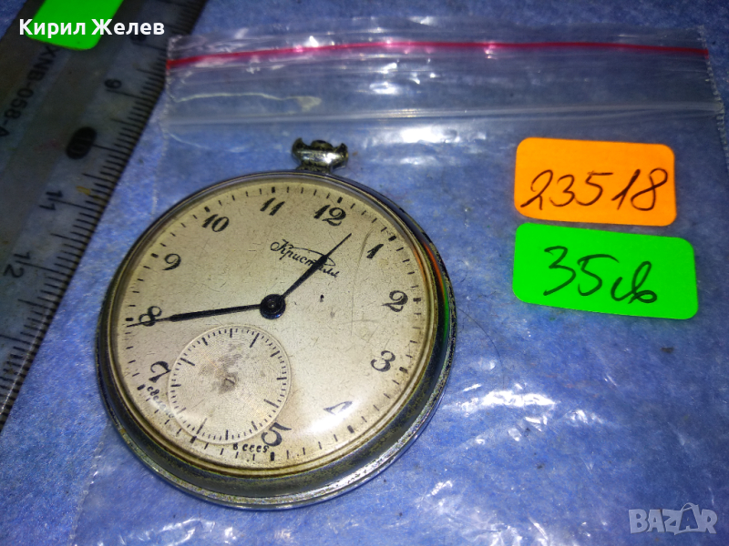 КРИСТАЛЛ ЧЧЗ СДЕЛАНО в СССР Стар РУСКИ КОЛЕКЦИОНЕРСКИ ДЖОБЕН ЧАСОВНИК МЪЛНИЯ КРИСТАЛ 23518