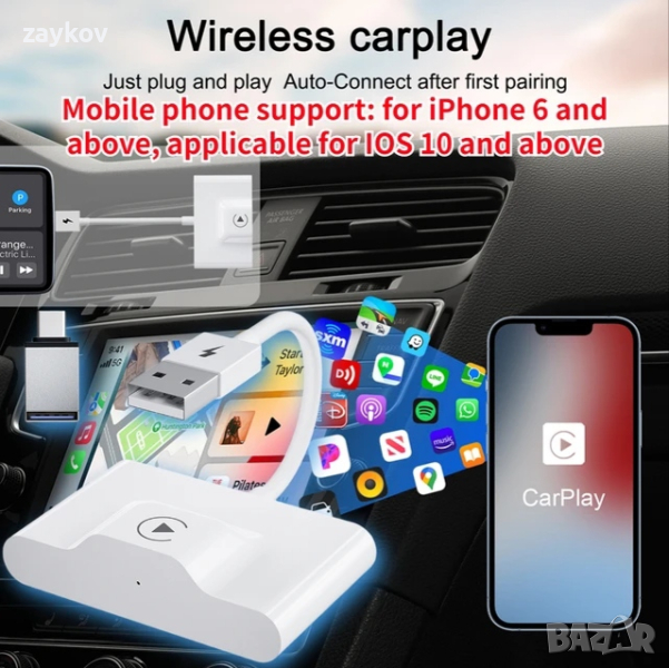 Безжичен CarPlay адаптер за lPhone Безжичен автоматичен автомобилен адаптер, снимка 1 - Аксесоари и консумативи - 45031246 Безжичен CarPlay адаптер за lPhone Безжичен автоматичен автомобилен адаптер, снимка 2 - Аксесоари и консумативи - 45031246 Безжичен CarPlay адаптер за lPhone Безжичен автоматичен автомобилен адаптер, снимка 3 - Аксесоари и консумативи - 45031246 Безжичен CarPlay адаптер за lPhone Безжичен автоматичен автомобилен адаптер, снимка 4 - Аксесоари и консумативи - 45031246 1/4
