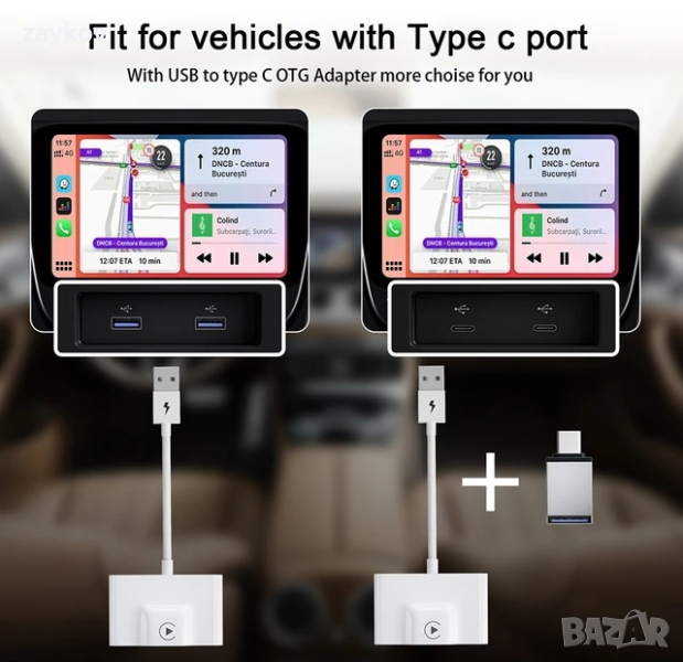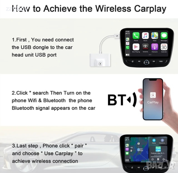 Безжичен CarPlay адаптер за lPhone Безжичен автоматичен автомобилен адаптер → Обява 45031246