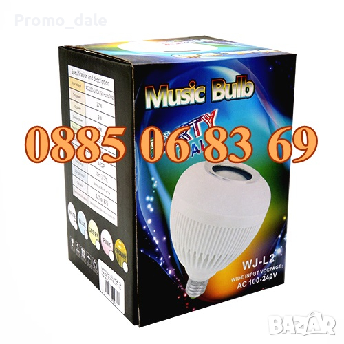 Диско LED лампа с много, последователно сменящи се цветове и вграден високоговорител, с който да слушате любимата си музика от телефона