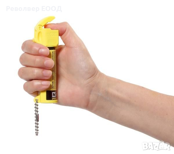 Лютивият спрей Personal Pepper Spray Yellow 803C е винаги готов когато имате нужда от него. Просто поставете палеца си под предпазната капачка и натиснете червения бутон, за да пръскате.