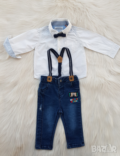 Детски дънки Мики Маус, риза и папионка 9-12 месеца → Обява 45034404
