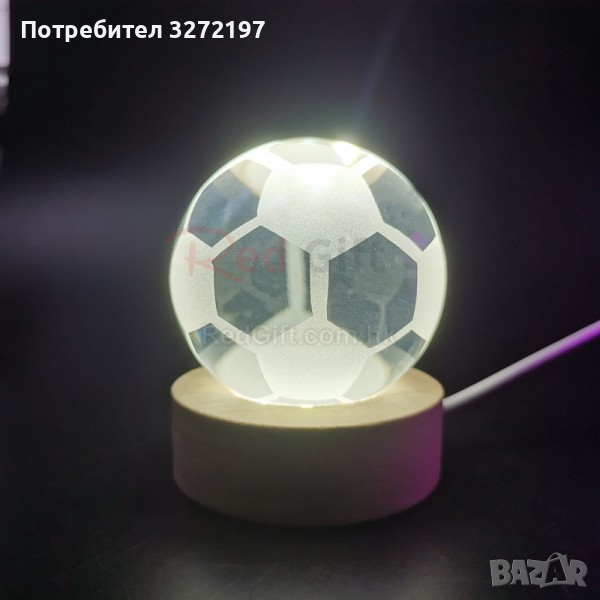 LED Светеща кристална топка/лампа, 3D сензорна - Футболна топка
