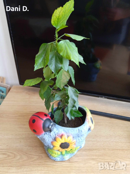 продавам красива декоративна саксия за цвете със слънчоглед и калинка
